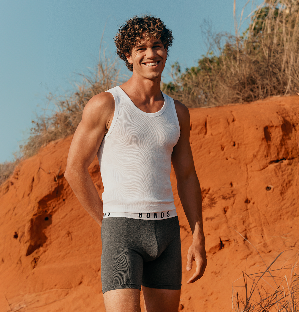 Addictively soft, the range of Bonds Originals men's underwear are made from luxe-to-touch fabrics. Featuring iconic undie shapes reimagined and elevated, discover a new age of men's undies and trunks including the Guyfront Trunk. With softer, smoother finishes that stretch so you move easily, it's gotta be comfy. It's gotta be Bonds Originals